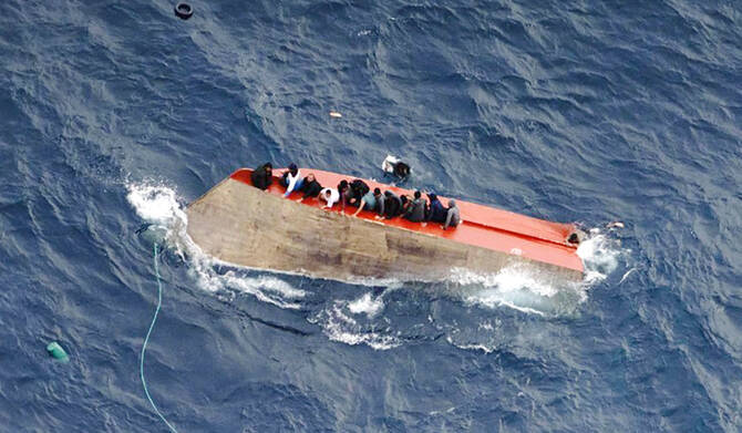 Footage released by Sea-Watch showed migrants struggling in open waters, with several individuals holding onto the partially submerged orange hull as rescuers approached.