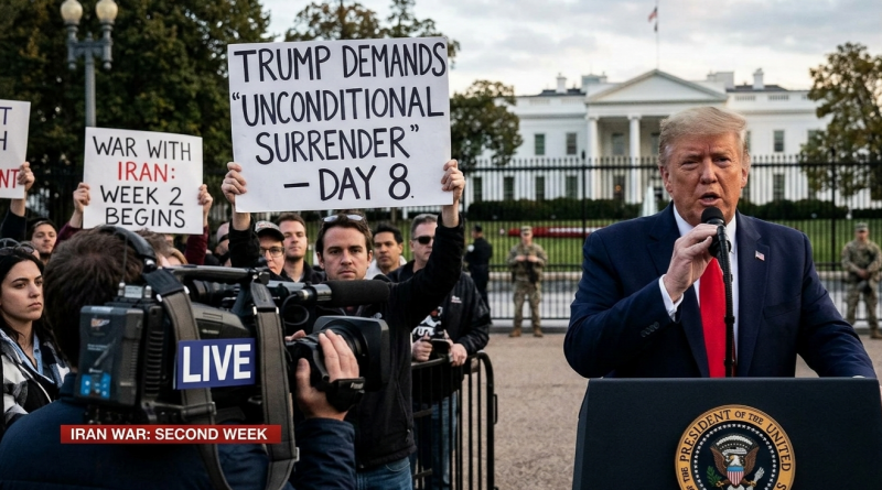 BEIRUT/WASHINGTON/JERUSALEM, March 7 — The war involving Iran entered its second week on Saturday as U.S. President Donald Trump said he would accept nothing short of Tehran’s “unconditional surrender,” while Israel exchanged fresh attacks with Iran and expanded military operations in Lebanon, raising uncertainty over how or when the conflict may end.